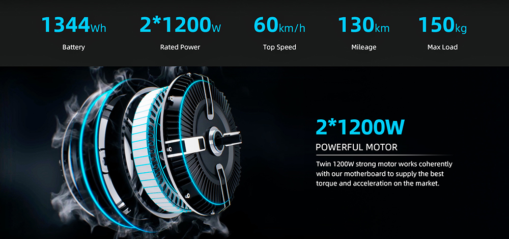 กำลังมอเตอร์ : 60V Dual motor (MAX 3,600 watt)