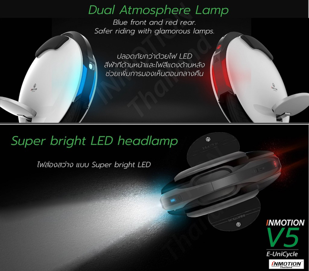 - ไฟหน้าแบบ LED ส่องสว่างสูง และไฟเบรกด้านหลัง