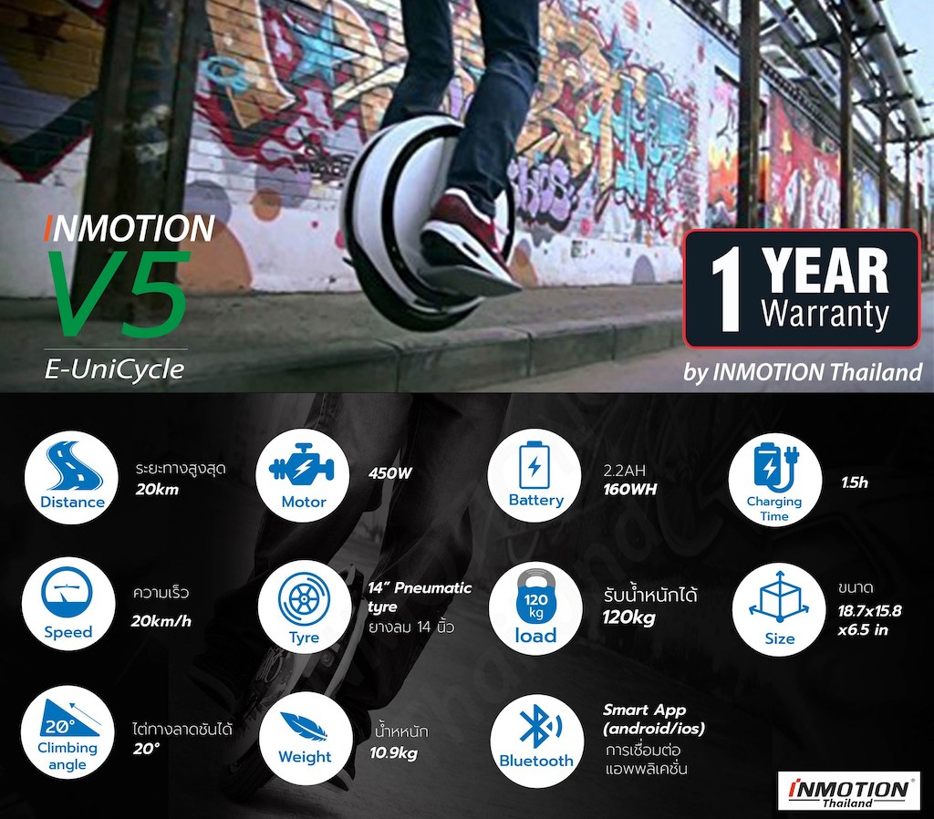 - รับประกันคุณภาพสินค้า โดย INMOTION Thailandby eWheels (สอบถามที่อยู่สาขาต่างๆ ได้ใน CHAT)